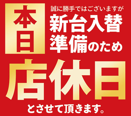 本日6日(月)定休日…明日7日(火) 新台入替★