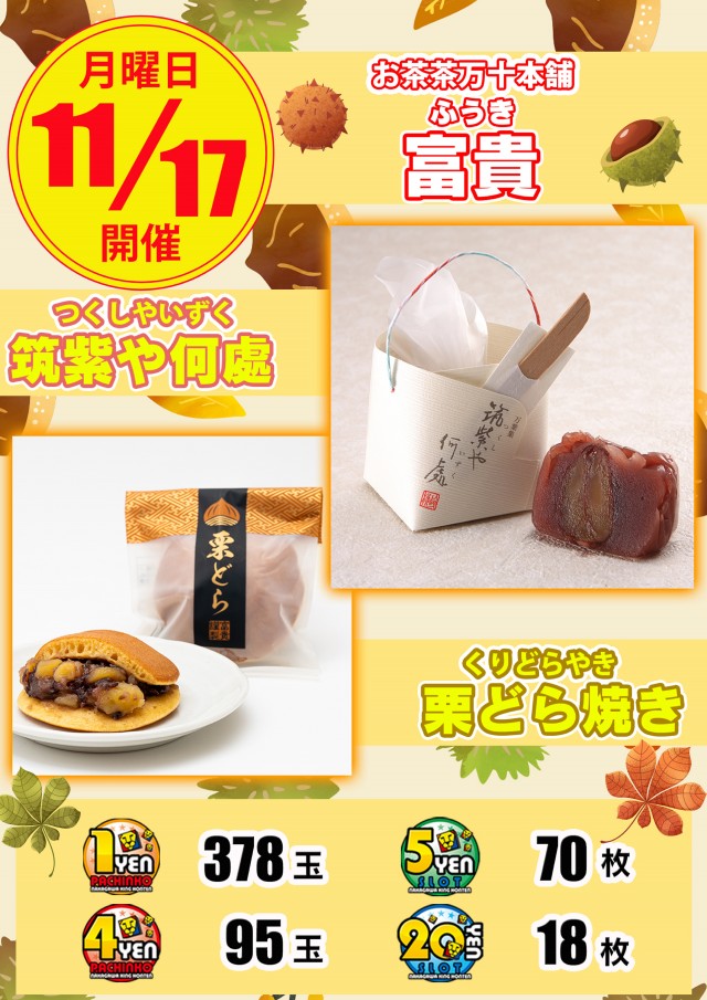 1位 11月8日(土) 2位 11月9日(日) 3位 11月11日(火)