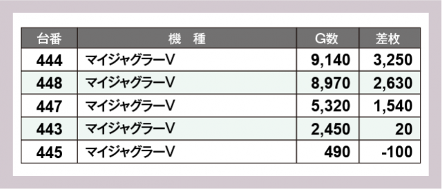 ※差枚数順に掲載しています