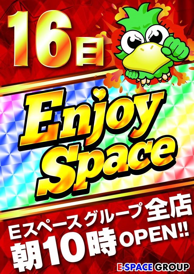 16日エンジョイスペース🌈🌈グループ全店朝10時OPEN🌈🌈