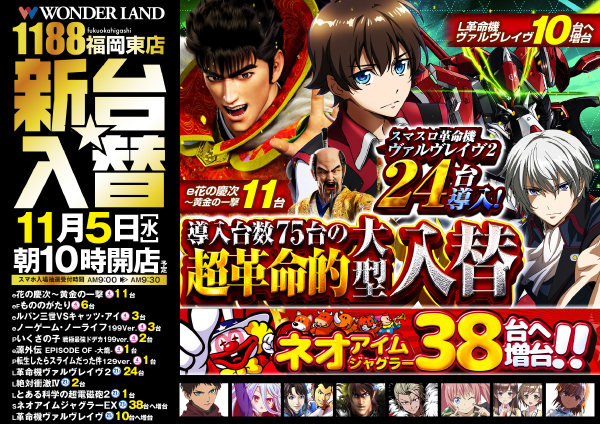 11月5日(水)☆新台入替☆朝10時開店!!