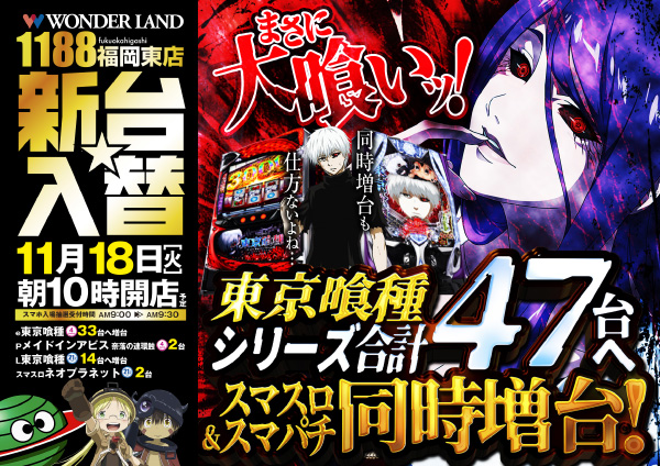 11月18日(火)☆新台入替☆朝10時開店!!