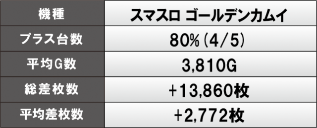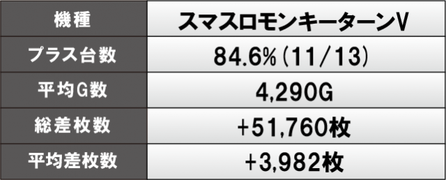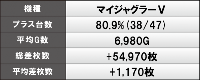 機種単位での活躍を見ると、大量設置されている『マイジャグラーⅤ』では勝率80%超、平均差枚数+1,170枚とハイスペック機種に負けじと存在感を大いに示していた。また、スマスロ機では『スマスロモンキーターンV』『パチスロからくりサーカス』『パチスロ革命機ヴァルヴレイヴ』『スマスロ ゴールデンカムイ』と人気機種を中心に各所でまとまった出玉を獲得しており、いずれも総差枚数5桁OVERを記録。打ちごたえのある状況が整っていたことから館内の盛り上がりに大きく貢献していたと言える。