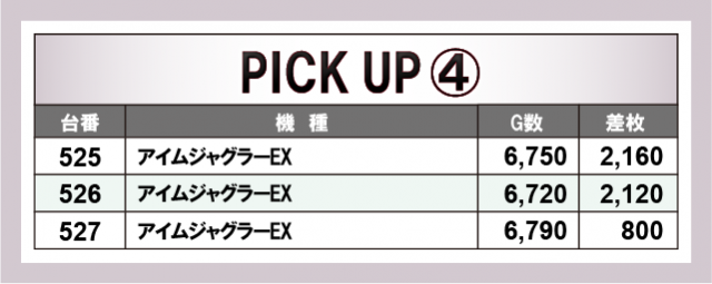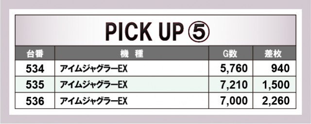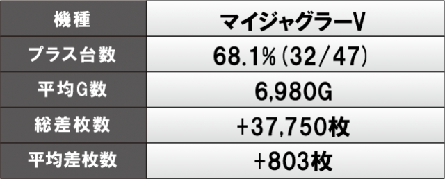 続いて、人気機種を中心に各所で好況スポットが発生していたのも見逃せない。右肩上がりのグラフを描いては終日を通して高い活気を維持していたのが鮮烈だ。最新台から定番機種、ジャグラーまでしっかりとポテンシャルを解放していた様子で、様々な機種の活躍が光った1日となったようだ。