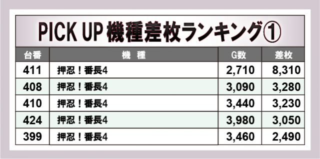 上表の5機種から多くの台が可能性を秘めていたと分かる。スマスロ機・メダル機ともに4桁プラス台が多数存在し、大きく盛り上がっていた様子だ。
