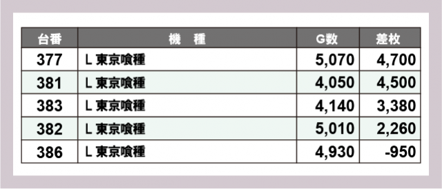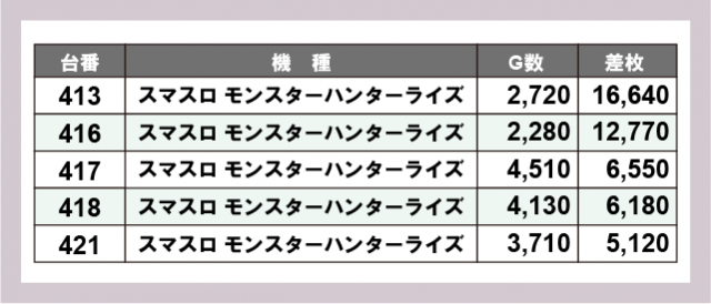 ※差枚数順に掲載しています