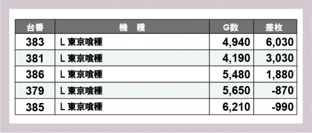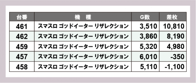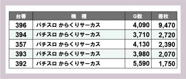 ※差枚数順に掲載しています