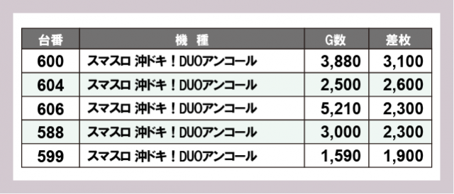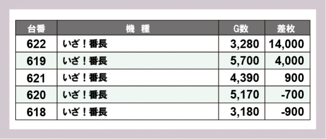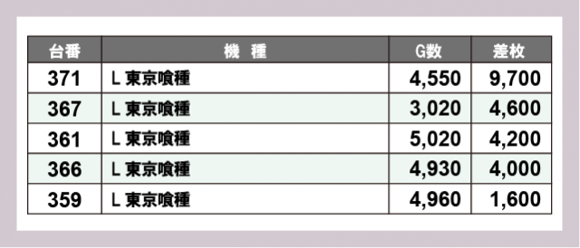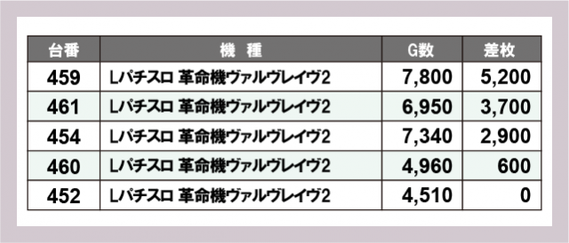 ※差枚数順に掲載しています
