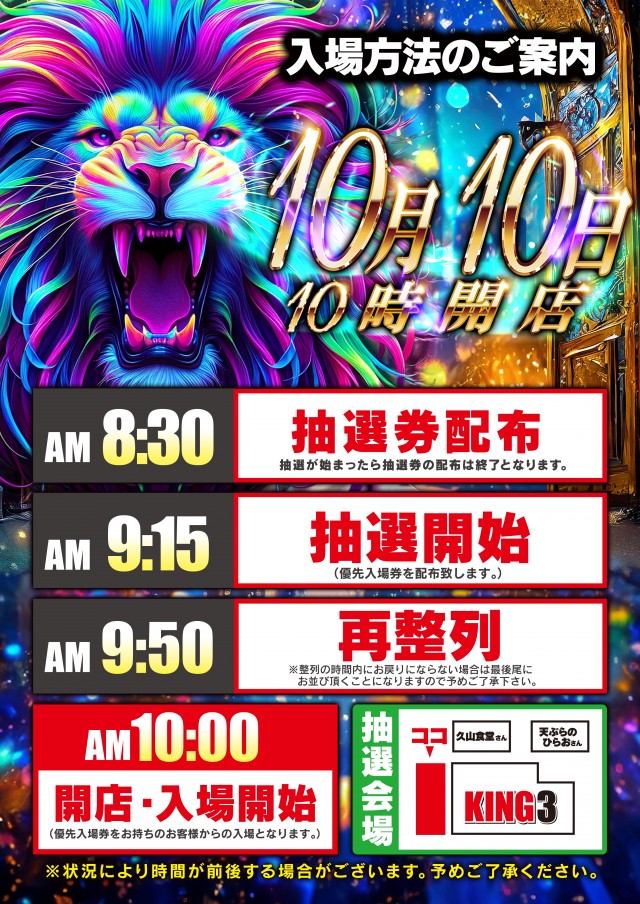 🌈10月10日トリプル来店!抽選時間がいつもと異なります!🌈