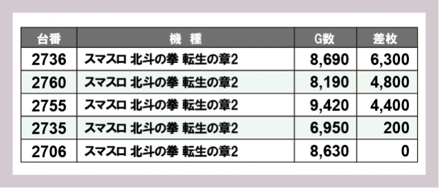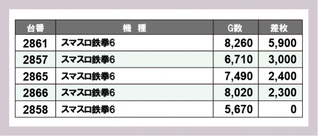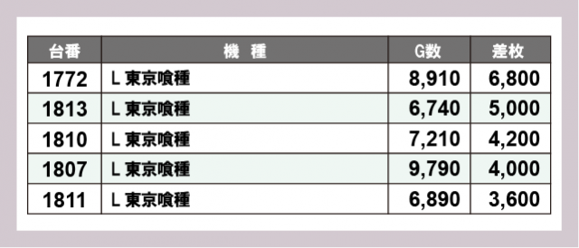※差枚数順に掲載しています