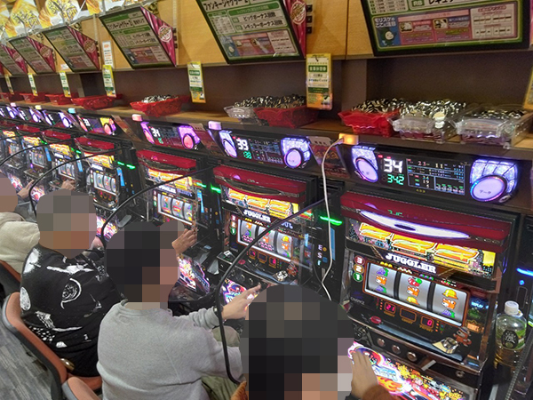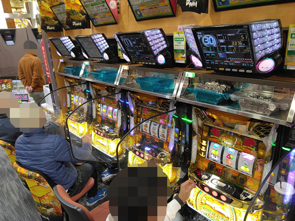 1000円/46枚パチスロをチェックすると「ファンキージャグラー2」や「マイジャグラーⅤ」で好調なプレイヤーを確認。納得の表情がそこかしこで見られた。