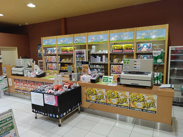 景品コーナーにはドリンク類やお菓子など多彩なアイテムが並んでおり、プレイヤーたちの興味を引いていた。