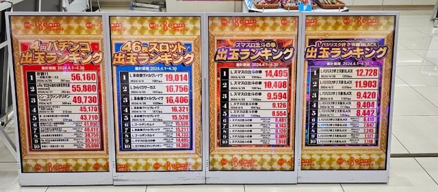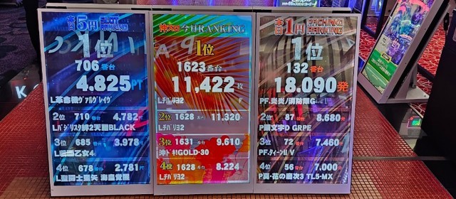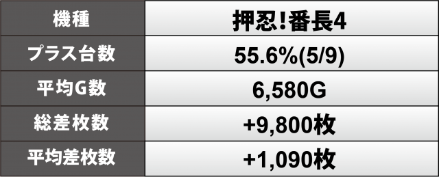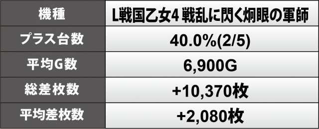 さらに『L戦国乙女4 戦乱に閃く炯眼の軍師』『押忍!番長4』にもハイクラスの台が続き、いずれも機種ごとの通算ではプラス5桁周辺の数値を計上した。