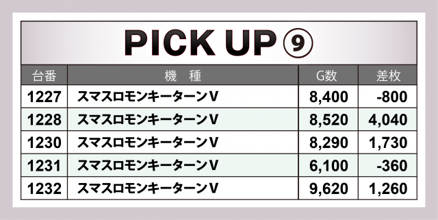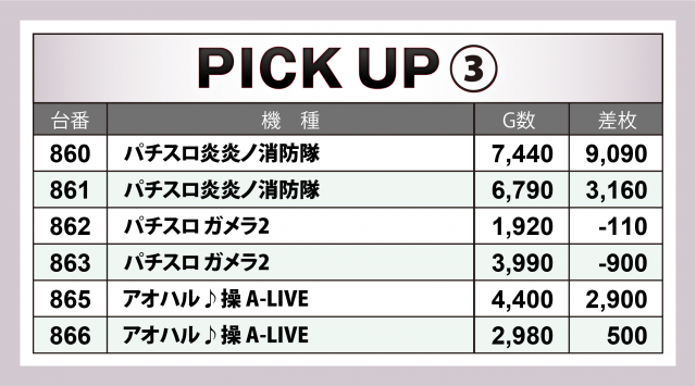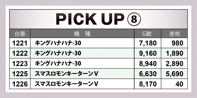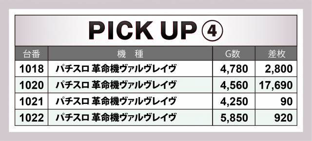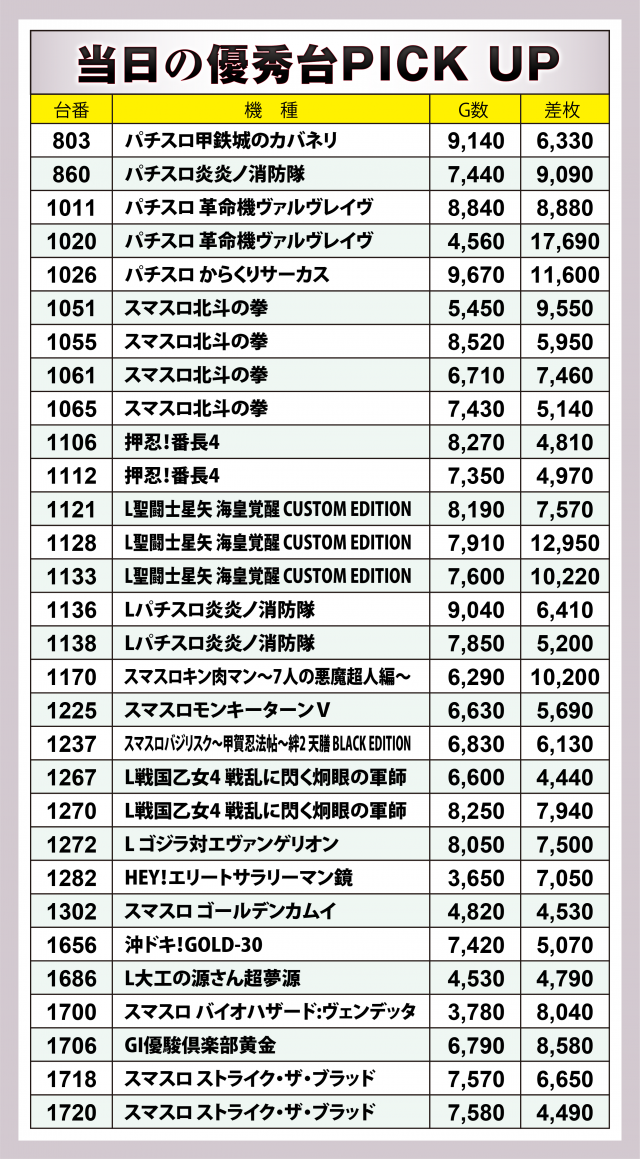 ここからは、入手した出玉データから当日に飛び出した優秀台の詳細を振り返っていく。