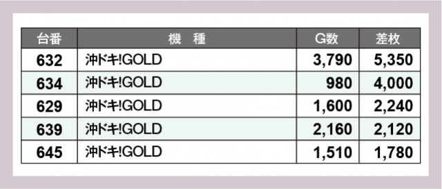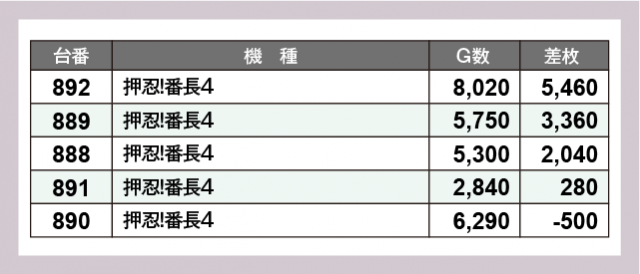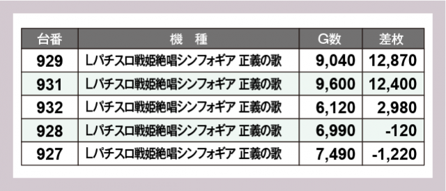 ※差枚数順に掲載しています