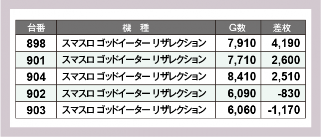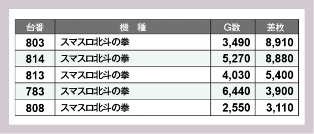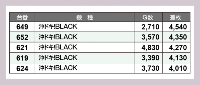※差枚数順に掲載しています