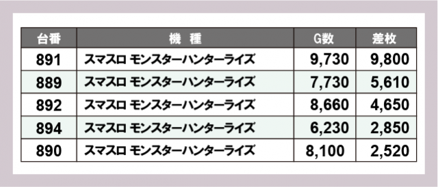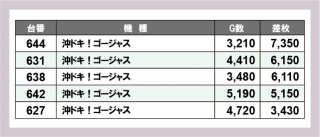 ※差枚数順に掲載しています