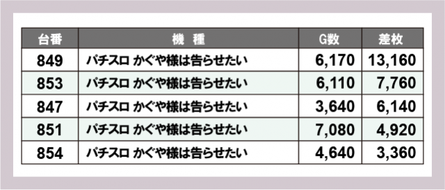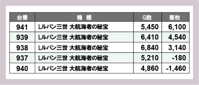 ※差枚数順に掲載しています