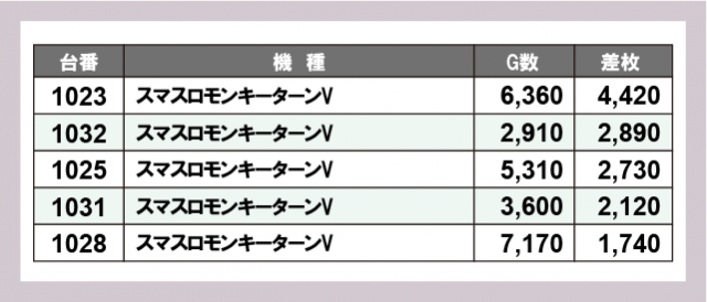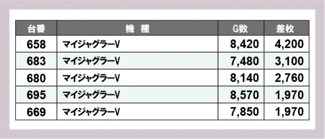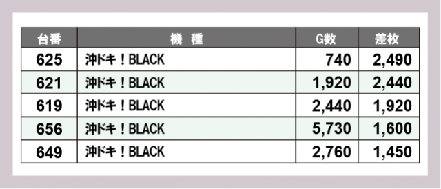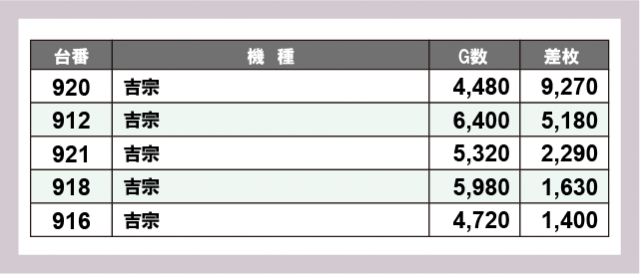 ※差枚数順に掲載しています