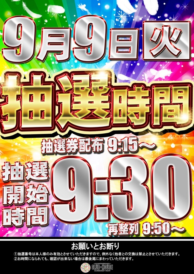 場所 たこハウス前 / 抽選参加券配布 9時30分~9時40分 (予定)/ 抽選開始 9時40分 (予定)/ 再整列 9時55分 (予定) |