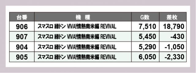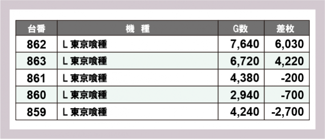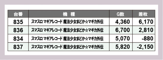 ※差枚数順に掲載しています
