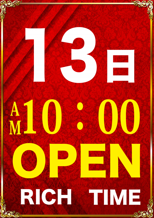 RICH&TIME 新台入替10時開店!!