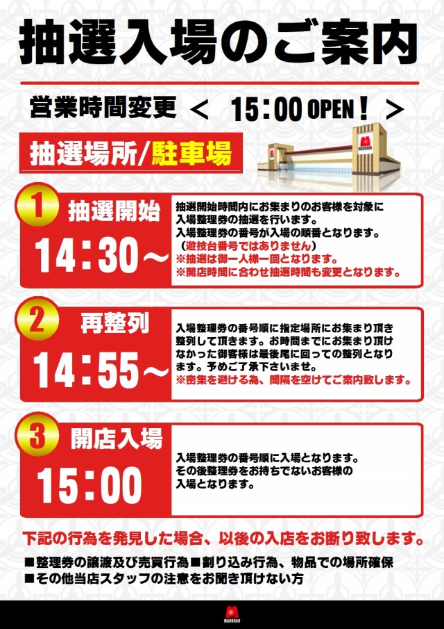 マルハン苅田店です。本日の営業のご案内です!!