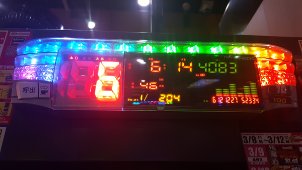 BIGを獲得できなかったこともあり、中盤には追加投資を繰り返したが、最後はきっちりとプラスの差枚でフィニッシュ!