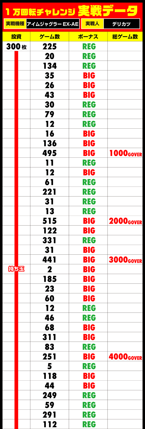 序盤からグングンと回転数を伸ばしていくと思いきや、ボーナスが連発したことによりペースは遅かった。