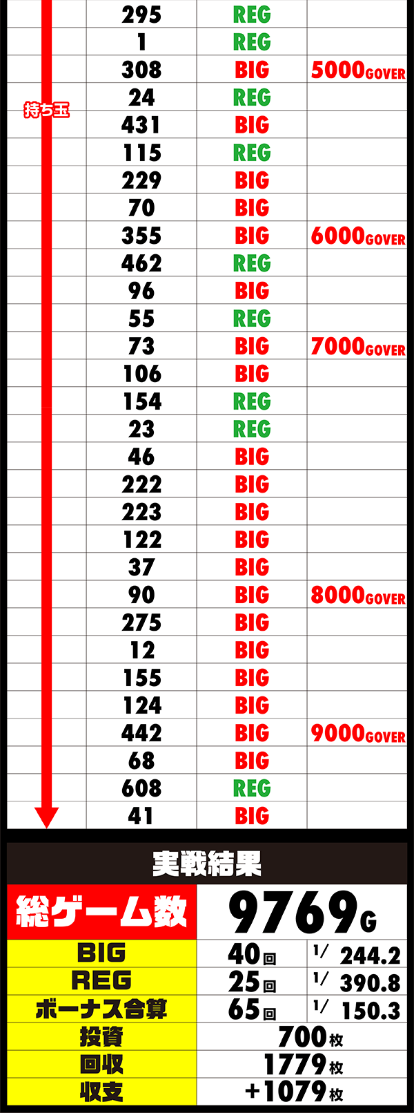 その後はボーナスがBIGに偏り、ゲーム数を消化するスピード自体もダウン…。