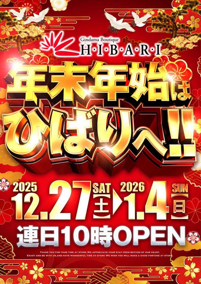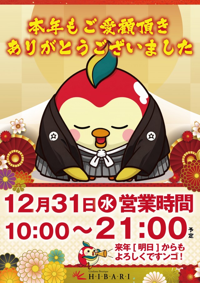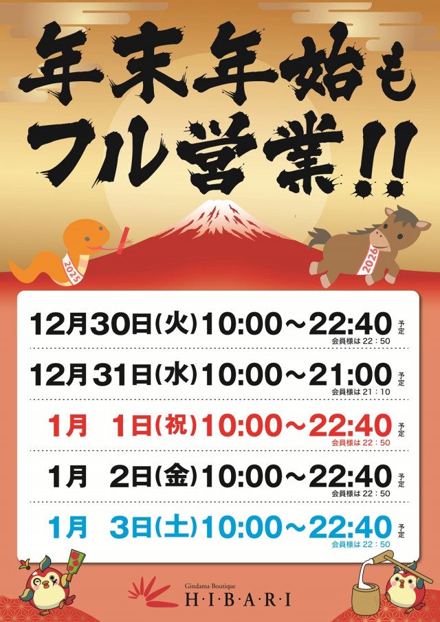 明日10時オープン!!!!(予定) 年末年始営業時間のご案内