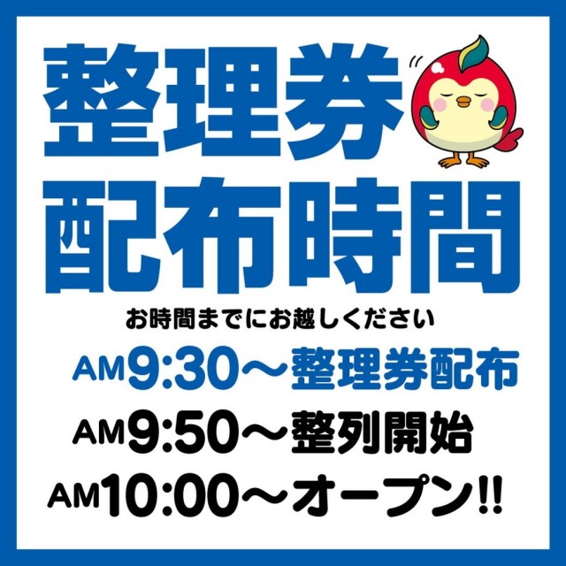 朝9:30より1階EVホールにて先着順で整理券を配布いたします。 |