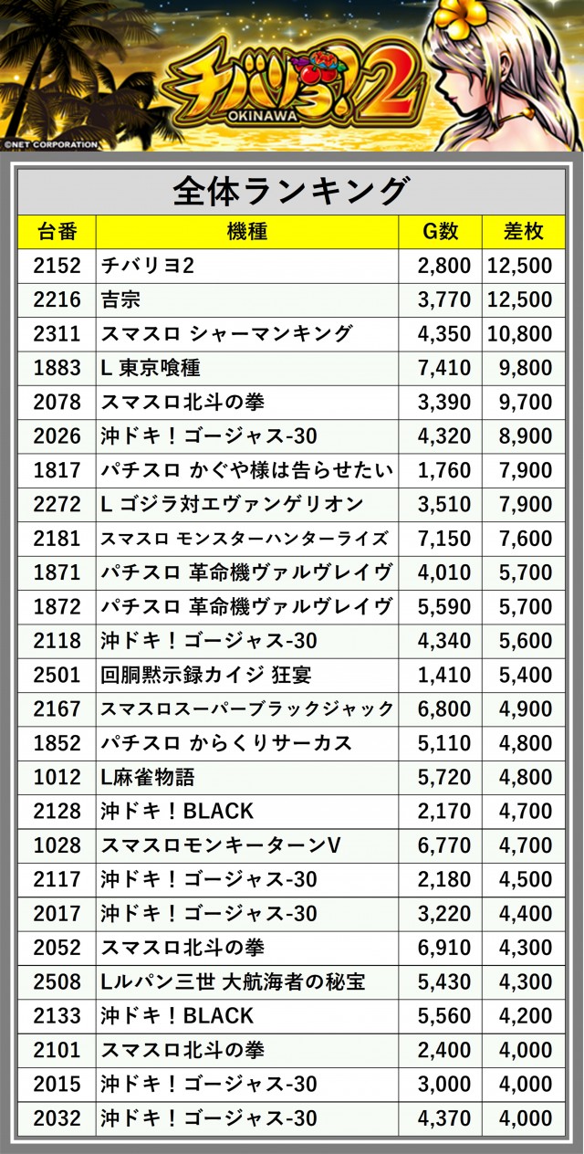 厳選された取材対象機種をはじめ、その他スロット全体から好記録が飛び出した!プレイヤーが楽しんだ1日を下記データにて振り返ってみて欲しい。