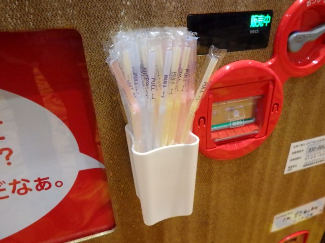 缶ジュースの全自販機に「ストロー」が置いてあるんですよ! 使いたい人は限られるかもしれませんが、こういう細やかな気遣いって嬉しいですよね?