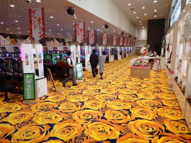 高い天井と、広くスペースが取られているカウンター前通路、そして敷き詰められた赤い花柄の絨毯。う〜ん、これは落ち着いて遊技できそうですねぇ。