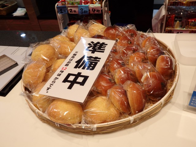 山と積まれたパン! 12時からの数量限定商品とのことで、ちょうど腹ペコ気味の食欲を刺激します。……メダル借りて、打たずにすぐ流しちゃダメですかね?