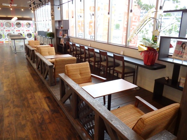 敷地内にコインランドリーとクリーニング店があるんですよ! これ、間違いなく便利だし、自分ちの最寄りのホールにあったら絶対利用するなぁ。ホール内に負けず劣らず快適そうだし、しかも安い! ただ、遊技に夢中になって、洗濯物を洗いかけで放置しちゃわないかだけが心配(笑)。