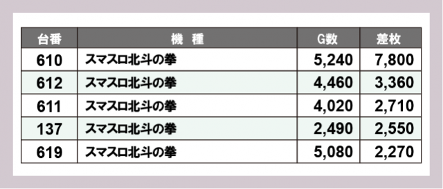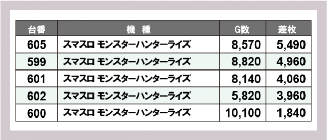 ※差枚数順に掲載しています