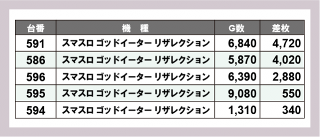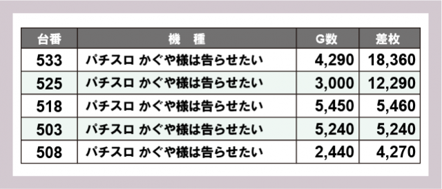 ※差枚数順に掲載しています