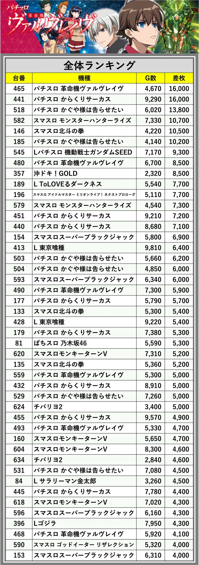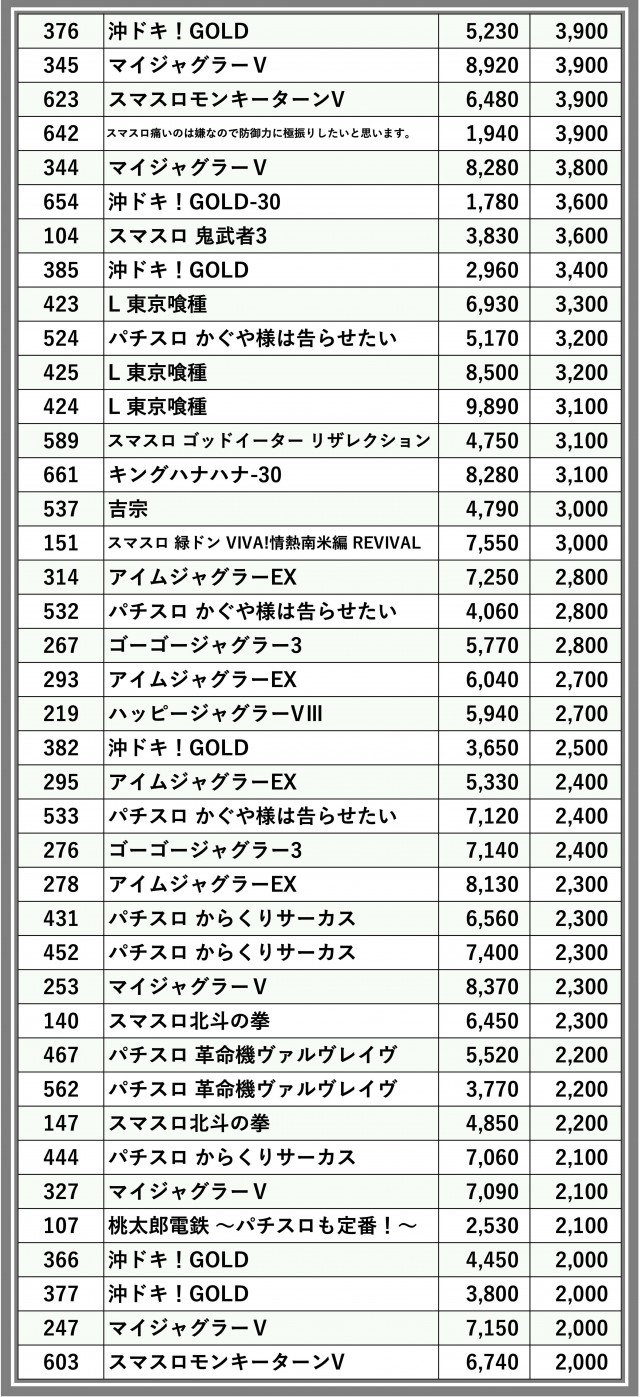 厳選された取材対象機種をはじめ、その他スロット全体から好記録が飛び出した!プレイヤーが楽しんだ1日を下記データにて振り返ってみて欲しい。