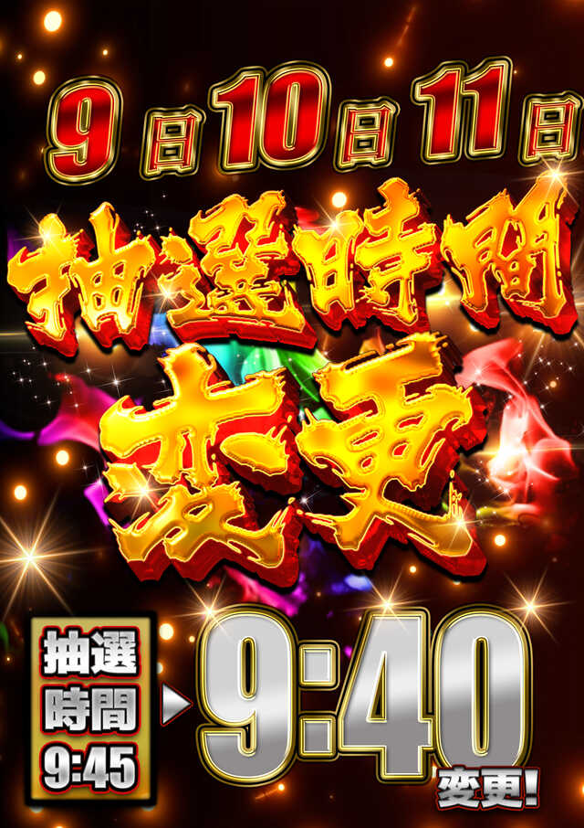 9時45分入場抽選開始※9時40分の場合もあります。最新情報をご覧ください。 |