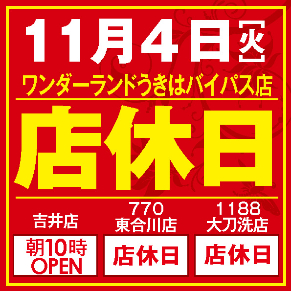 4日 店休日 ご遊技はお近くのワンダーランドへ♪