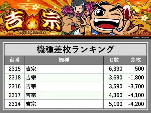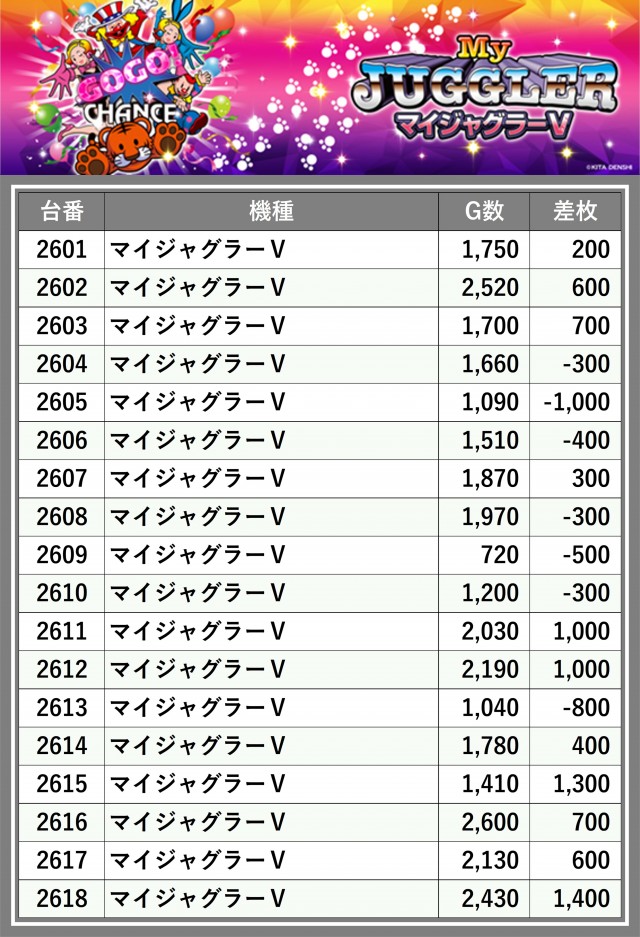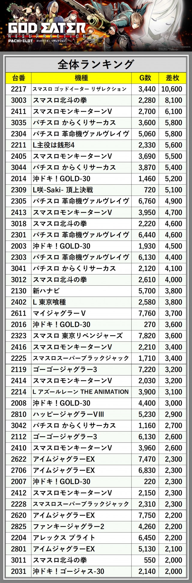厳選された取材対象機種をはじめ、その他スロット全体から好記録が飛び出した!プレイヤーが楽しんだ1日を下記データにて振り返ってみて欲しい。