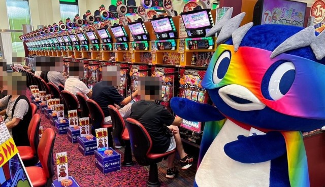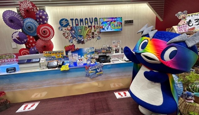 ホール内全体がお祭り仕様に彩られ、たまピーも入店するや否やテンションが上がっていたようだ。景品コーナーには魅力的な景品が数多くあるなか、地元の新鮮野菜も置いてあり地域との交流を大切にしていることが窺える。また、同店のレストスペースでは多くのお客様が利用しており、満足いく環境が整っていたぞ。
