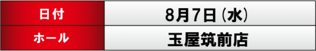 8月7日、『玉屋筑前店』にて玉屋×DMMぱちタウンのコラボ企画「たまピー来店取材」が実施された。創業71周年を記念したコラボ企画なだけに同店も気合を入れて臨んだ一戦となったが、果たしてホール内の盛り上がりはどうだったのか…さっそく以下からその詳細をご覧いただきたい!