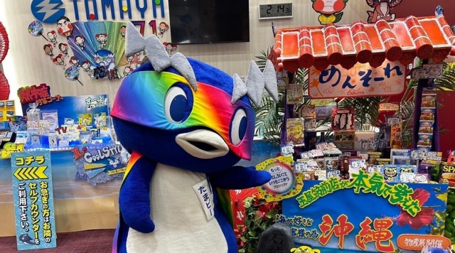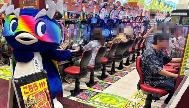 広々とした解放感のある店内には自然の光がたっぷり差し込み、それにつられてファンは笑顔で遊技していた様子が印象的だ。景品コーナーには沖縄物産が始まったばかりで、たまピーも興奮気味で鑑賞していたぞ。
