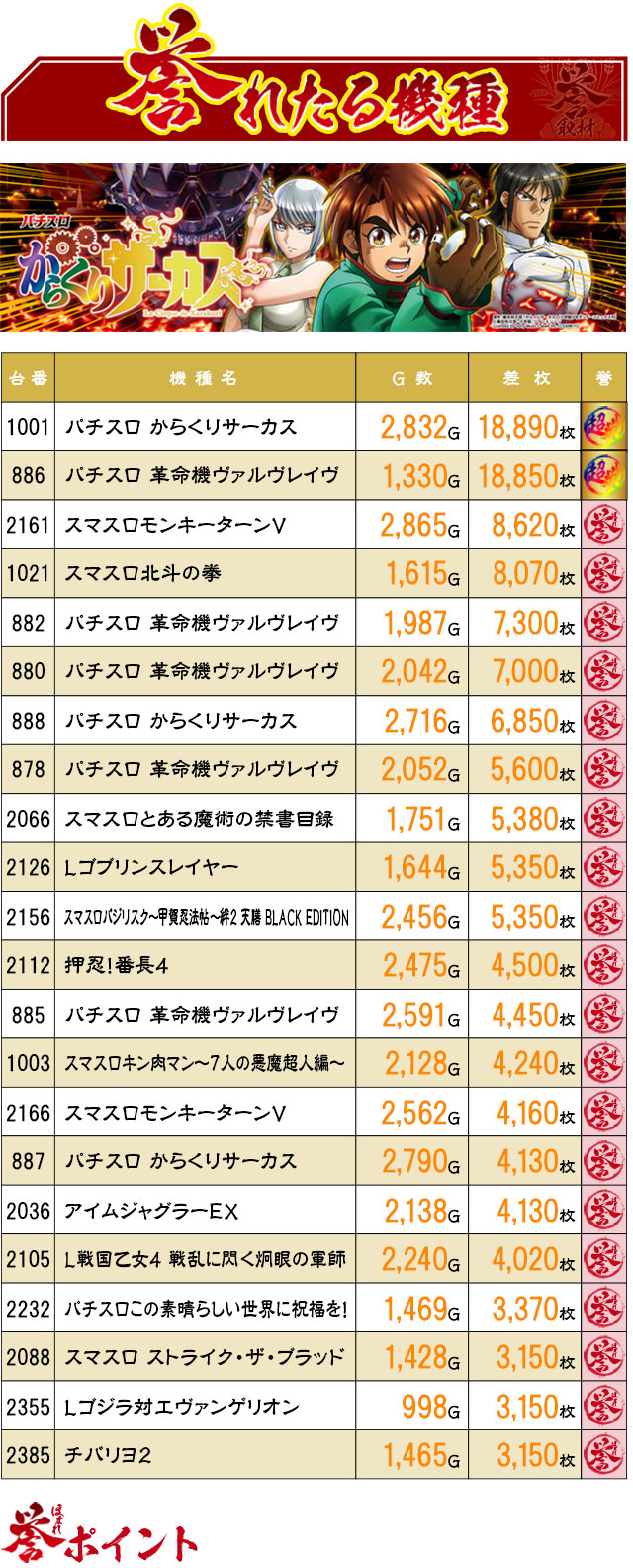 とんでもない記録が当たり前のように飛び出したこの日。1・2位記録はコンプ、3位以下にも化物レコードがズラリと並ぶ。赤誉マーキングがこれだけ多かったということは、それだけ満足したユーザーがいたということ。