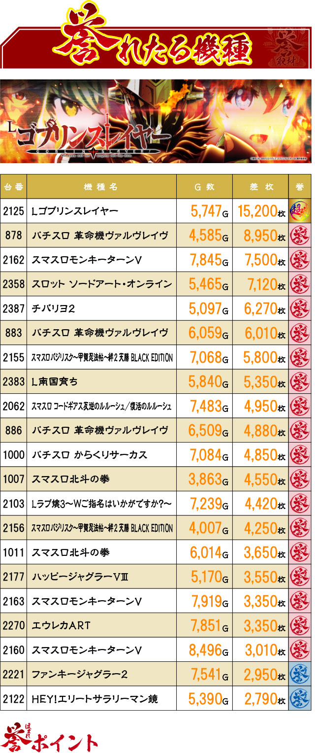 果たして4月30日(火)のパチスロコーナーにて【誉】を見つけることはできたのか?