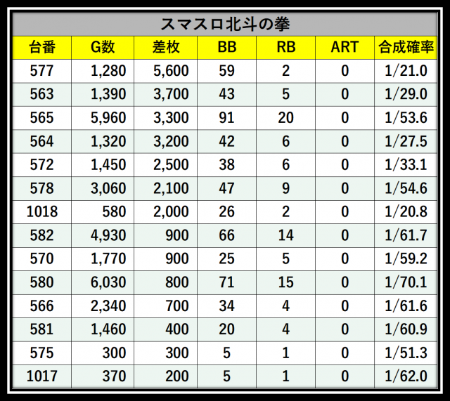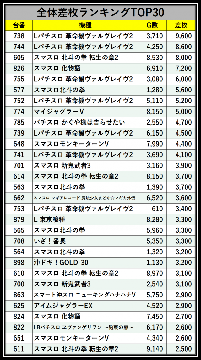 ※差枚数順に掲載しています