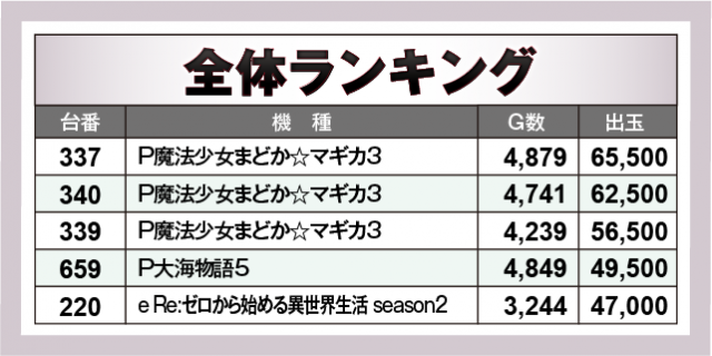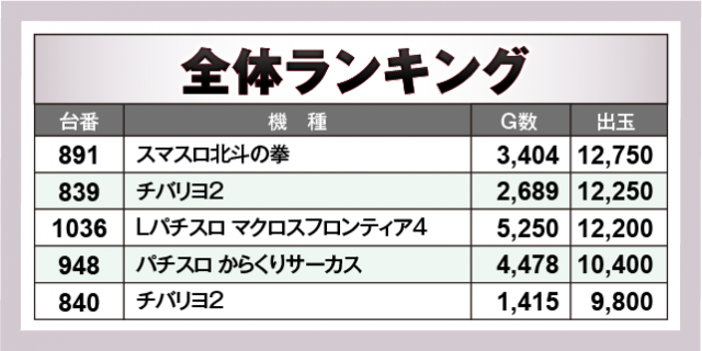 ※出玉数順に掲載しています